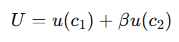 소비자의 효용함수는 생애주기 가설에 따라 다음과 같이 설정된다.
