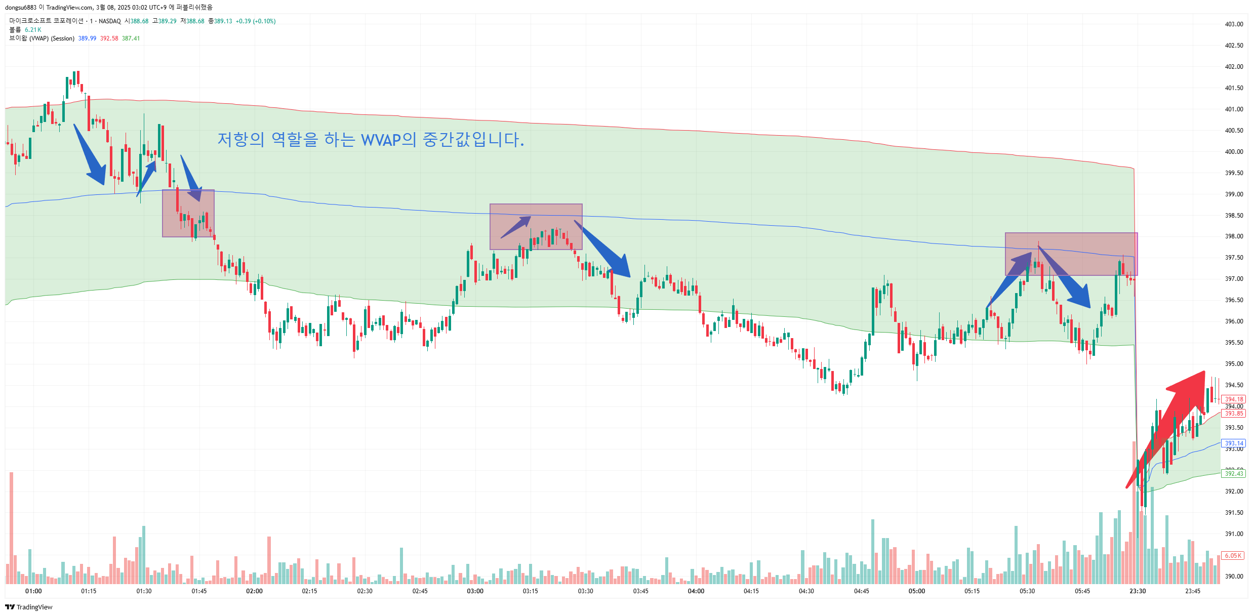 - VWAP에서 반등할 때 거래량이 증가하면 추가 상승 가능성이 크다.