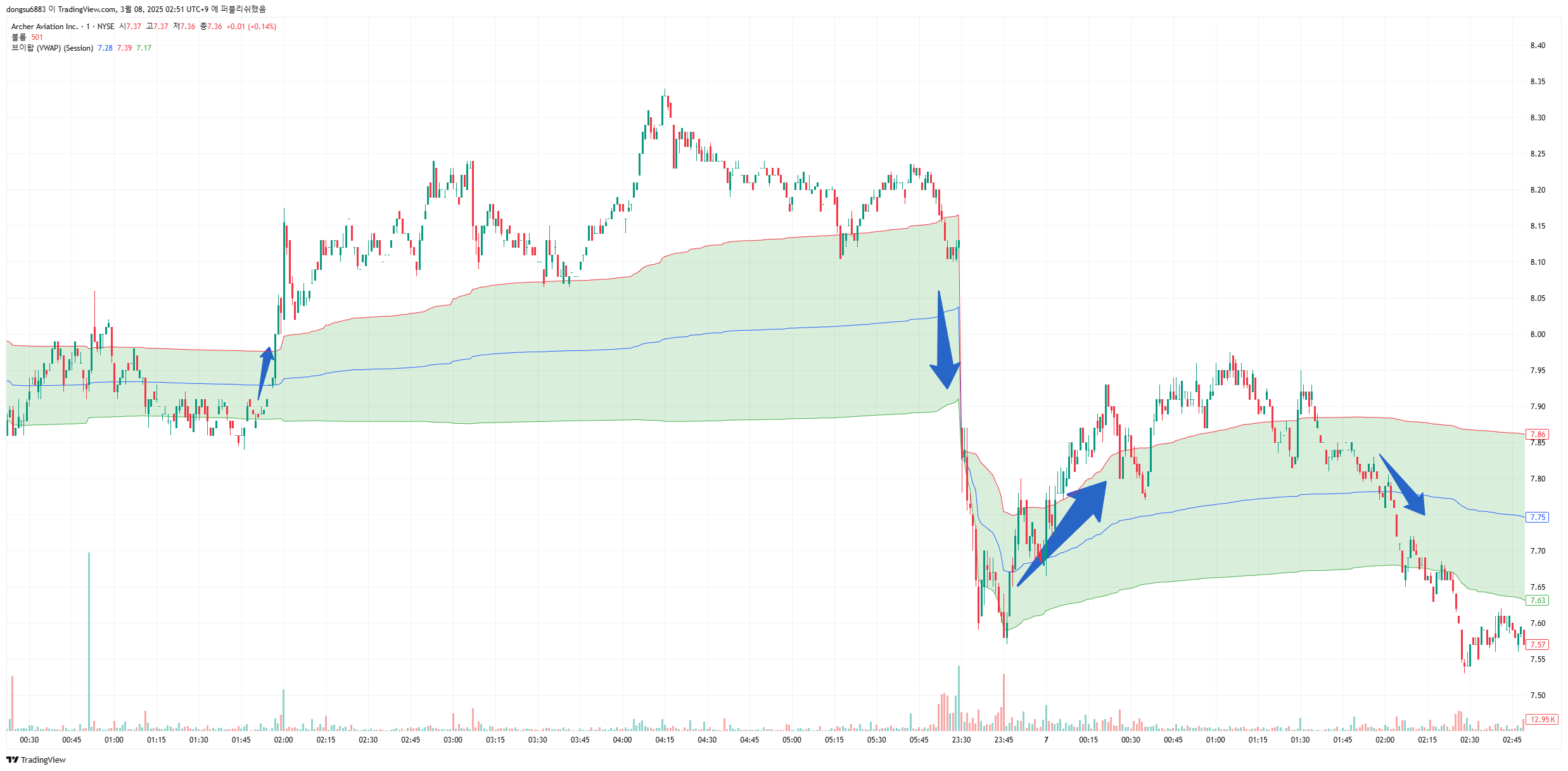 - 단기 조정이 발생할 때 VWAP 중심선 근처에서 지지를 확인한다.