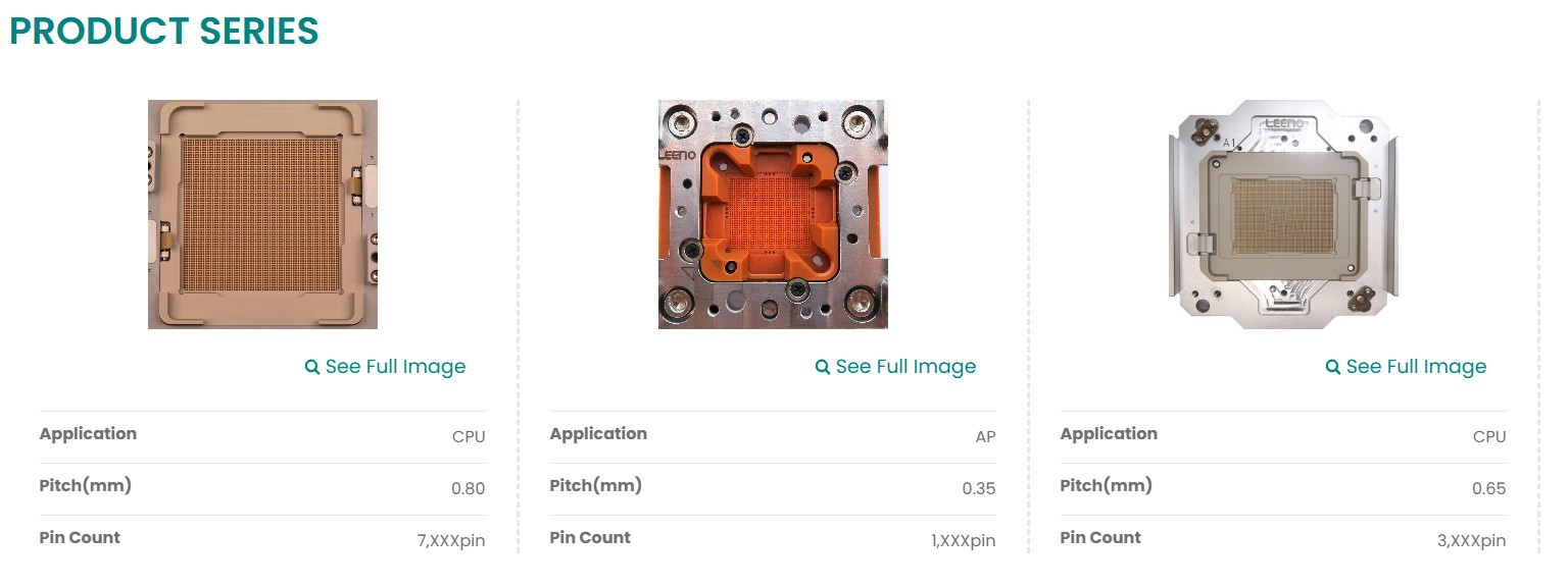 리노공업 - system level test soket (출처:리노공업 홈페이지)