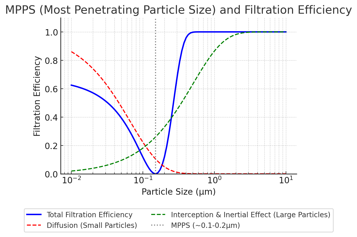 이를 MPPS (Most Penetrating Particle Size, 최다 투과 입자 크기) 라고 부른다.