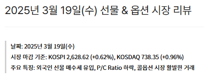 | 2025년 3월 20일(목) 선물 & 옵션 시장 리뷰 (0) | 2025.03.20 |