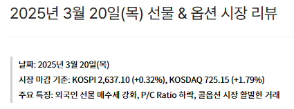 2025년 3월 20일(목) 선물 & 옵션 시장 리뷰