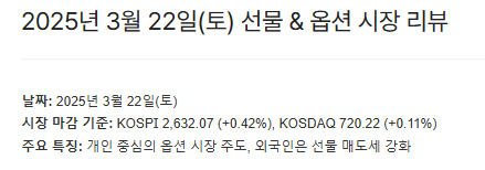 개인: 선물과 옵션 모두에서 강한 상승 베팅. 특히 콜옵션 1만 계약 이상 순매수는 심리적 기대감 과잉 우려도 동반.