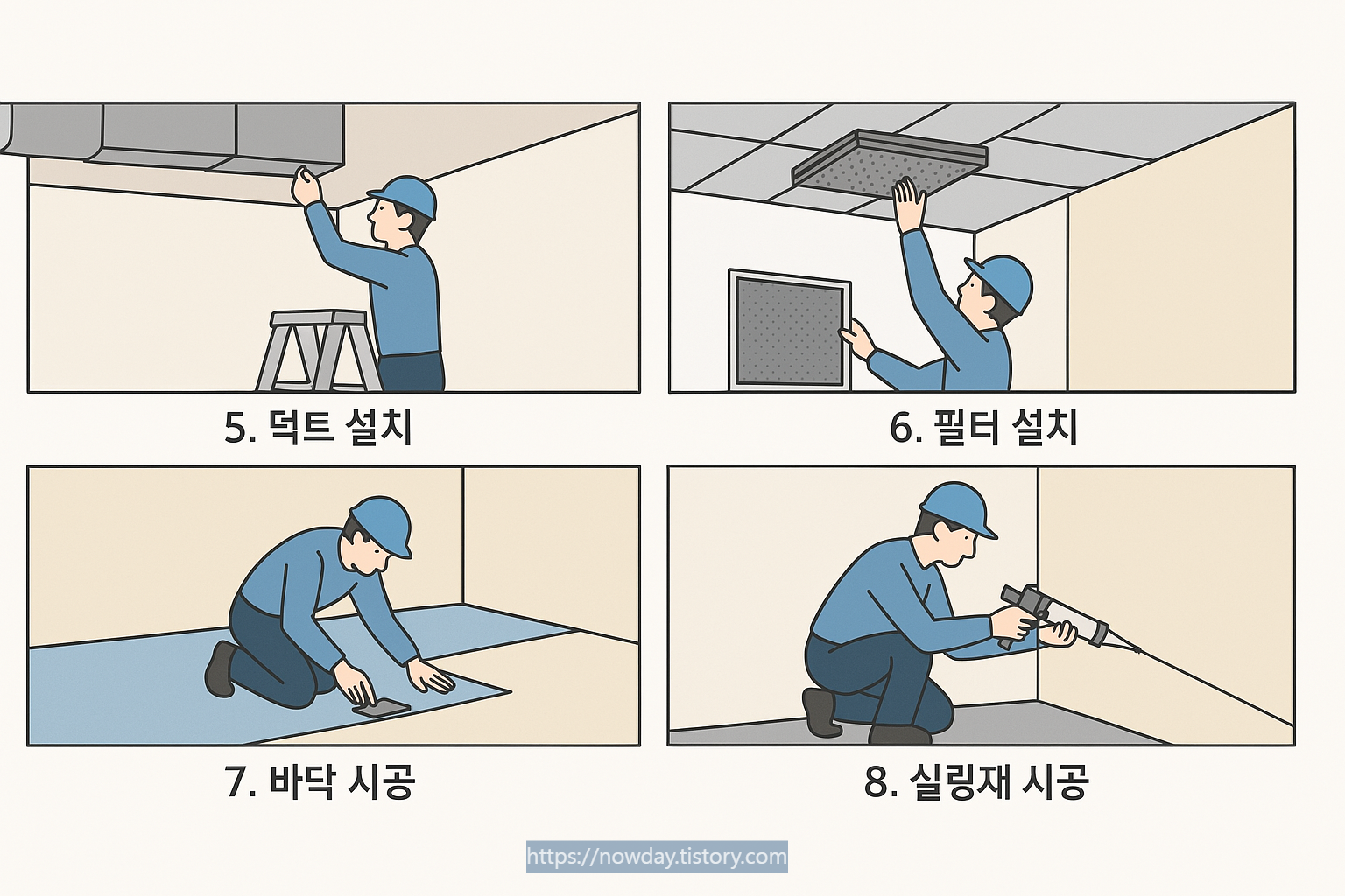 - 주요 자재: 패널, 덕트, 필터, 조명, 전기설비, 바닥재, 실링재 등