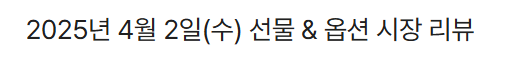 | 2025년 4월 1일(화) 선물 & 옵션 시장 리뷰 (0) | 2025.04.01 |