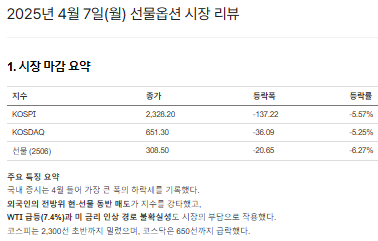 2025년 4월 7일(월) 선물옵션 시장 리뷰