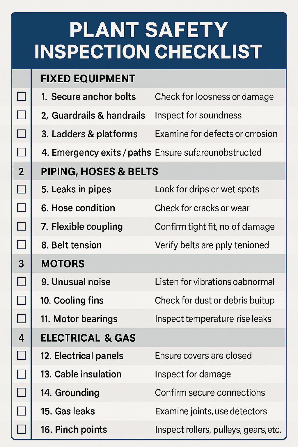 매일 또는 주간 단위로 활용 가능한 설비 안전점검 항목 15가지를
