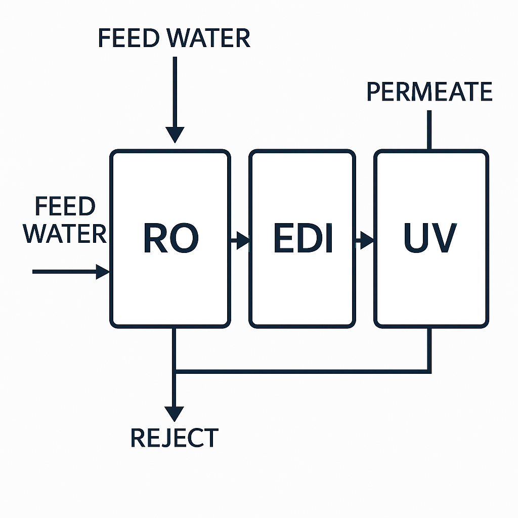UPW 시스템의 루핑 설계는 전체 수질 품질을 좌우하는 핵심입니다.