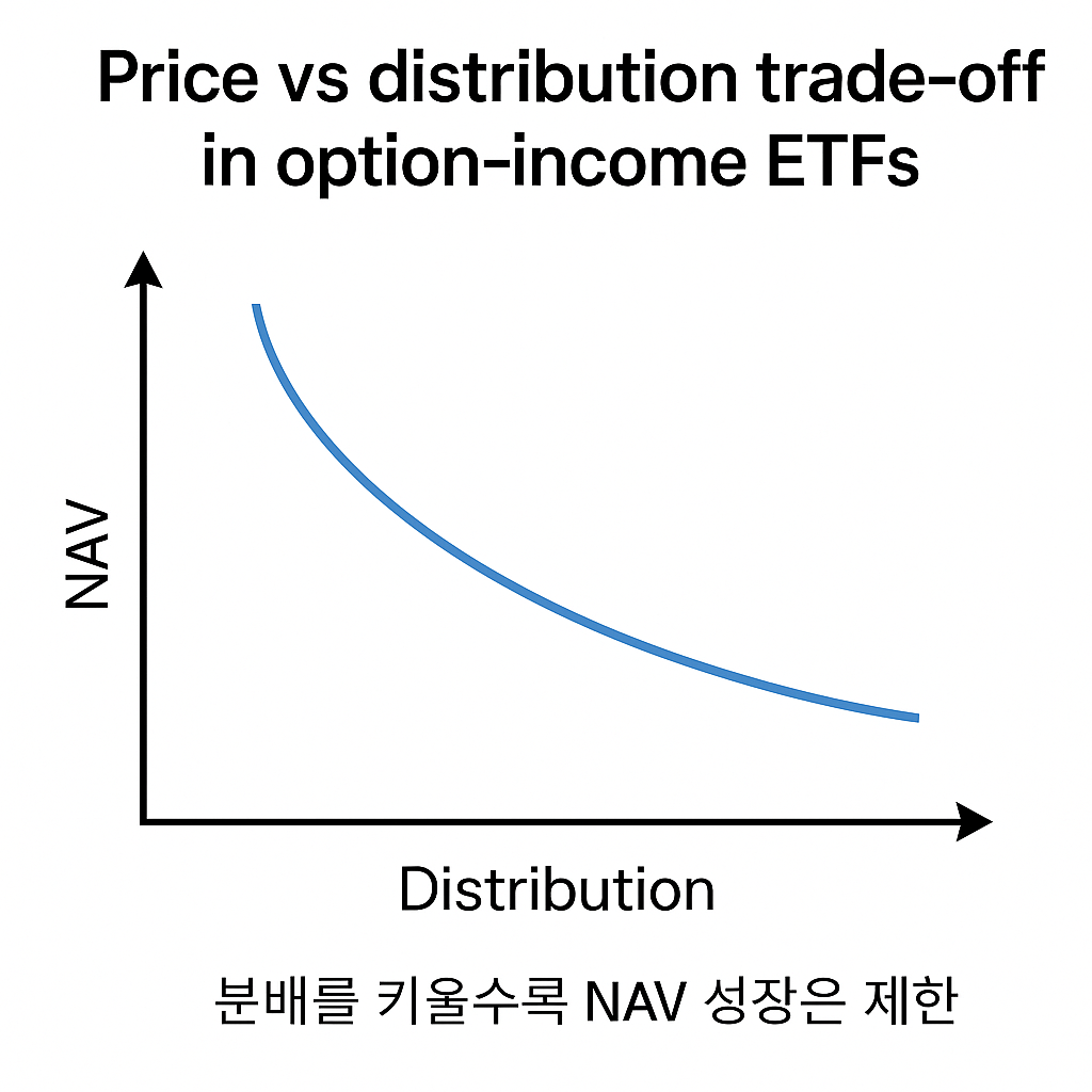 - 변동성 높은 장세에서 유리: 프리미엄 수취가 많아 배당 유지 가능