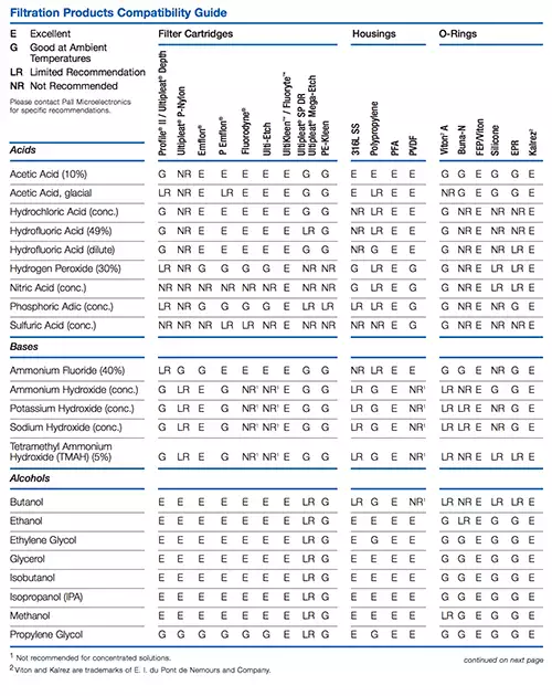 내화학성 표는 사용하려는 필터 브랜드 카탈로그 검색하면 나온다. DIW같이 쉬운거 아니면 무조건 찾아보자.