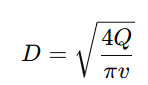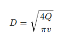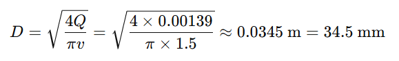 5 m³/h = 5 / 3600 ≈ 0.00139 m³/s - 내경 계산